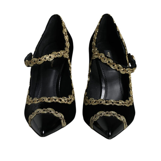 Dolce & Gabbana Black Mary Janes Velvet Gold Pumps Shoes