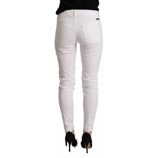 Dolce & Gabbana White Cotton Mid Waist Skinny Denim Jeans