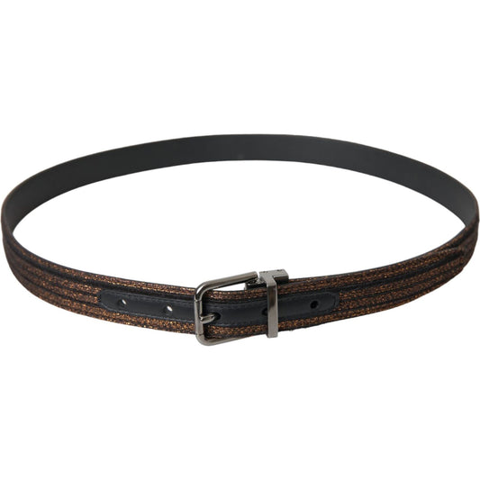 Dolce & Gabbana Gold Glitter Leather Silver Metal Buckle Belt