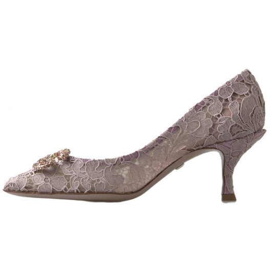 Dolce & Gabbana Pink Taormina Lace Crystal Pumps Pastel Shoes