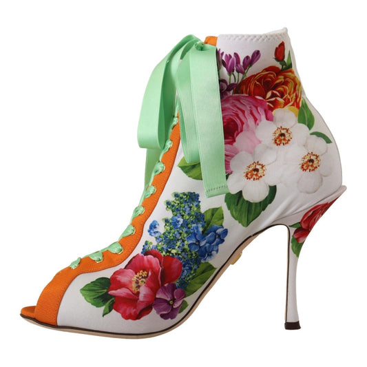 Dolce & Gabbana White Jersey Stretch Boots Open Toes Heels Shoes