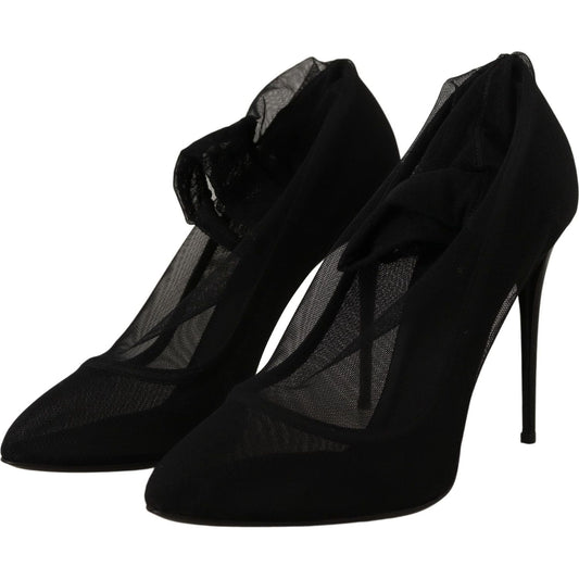 Dolce & Gabbana Black Tulle Stretch Boots Pumps Shoes