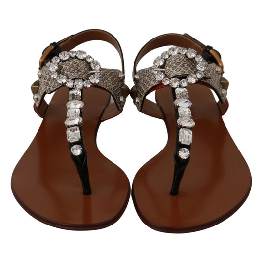 Dolce & Gabbana Leather Ayers Crystal Sandals Flip Flops Shoes