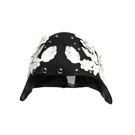 Dolce & Gabbana Black Wool White Floral Embellished Cloche Hat
