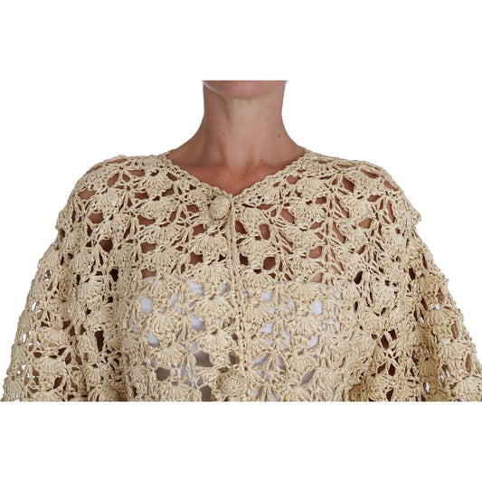 Dolce & Gabbana Beige Cardigan Crochet Knitted Raffia Sweater