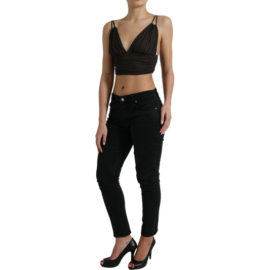 Dolce & Gabbana Brown Viscose Plunging V-neck Cropped Tank Top