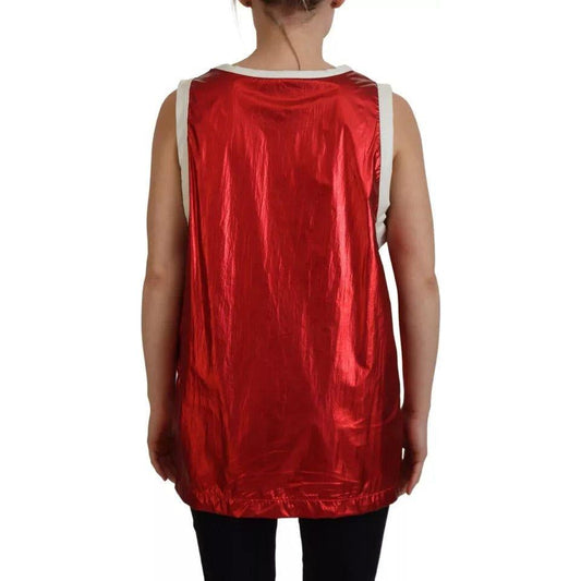 Dolce & Gabbana Red Nylon Logo Print Sleeveless Jersey Top