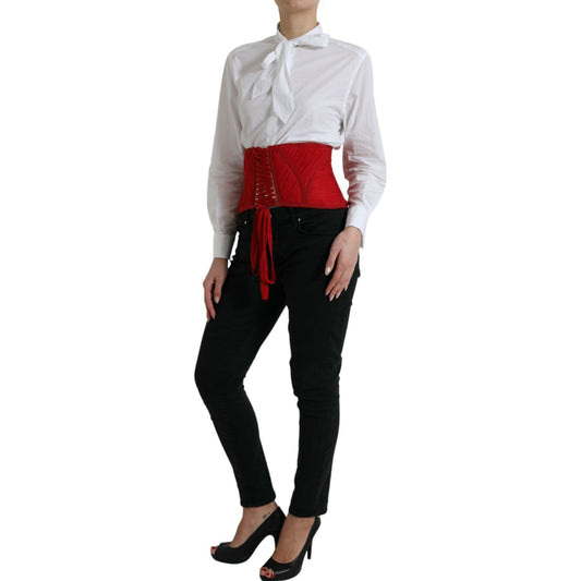 Dolce & Gabbana Red Silk Belt Waist Lace Up Strap Corset