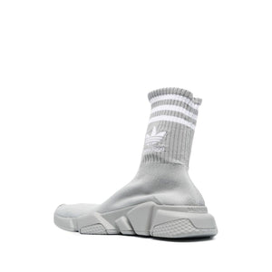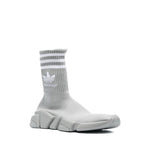 x Adidas Speed sock-style sneakers from BALENCIAGA featuring grey, white, knitted construction, ribbed knit, embroidered logo to the side, stripe detailing, sock-style ankle, almond toe and chunky rubber sole. Conscious: We've partnered with Good On You – an ethical agency that rates how sustainably brands perform. This item comes from a brand that performs well in relation to their impact on the planet.. Speed LT sneakers Size and Fit - Heel 1,6 in / 4 cm; Platform 0,8 in / 2 cm