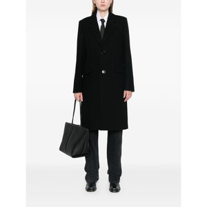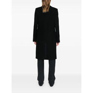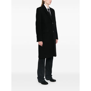 black wool felted notched lapels front button fastening long sleeves buttoned cuffs straight hem American rear vent chest welt pocket two front flap pockets full lining Wool single-breasted coat Size and Fit - This piece fits true to size. We recommend you get your regular size. Model is 1,75m / 5ft 8in wearing size 36 (FR)