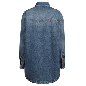 Midi lenght denim cotton shirt, longsleeves, buttoned. Color: denim. Denim jacket Size and Fit - This piece fits true to size. We recommend you get your regular size. Model is 1,75m / 5ft 8in wearing size 40 (IT)
