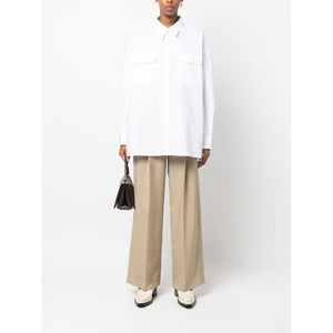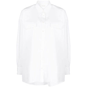 oversized cotton shirt from ARMARIUM featuring white, cotton, oversize frame, spread collar, front button fastening, two front flap pockets, long sleeves and straight hem. Cotton shirt Size and Fit - This piece fits true to size. We recommend you get your regular size. Model is 1,75m / 5ft 8in wearing size 40 (IT)