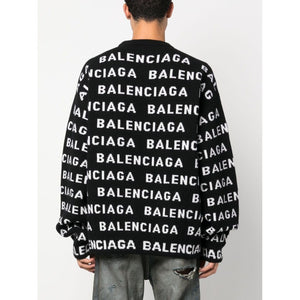 black/white wool blend intarsia-knit logo crew neck drop shoulder long sleeves ribbed cuffs and hem straight hem We've partnered with Good On You — an independent agency that rates how brands perform in relation to their impact on the planet, people and animals, with a multi-criteria rating simplified to a five points scale. In order to be awarded our conscious label, larger brands need to score a minimum of four out of five ('Good'), while smaller brands must score at least three out of five ('It's a start'). This item comes from a brand rated four out of five ('Good') by Good on You at the time it was added on FARFETCH. Please note, this is a brand-level rating and does not guarantee that this product is made with conscious materials. Learn more about what makes a product Conscious on our Conscious Criteria page Allover logo crewneck sweater Size and Fit - This piece fits true to size. We recommend you get your regular size. Model is 1,84m / 6ft 1in wearing size M