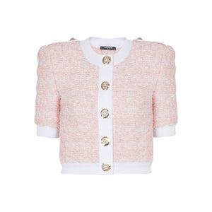 epaulettes Tweed cardigan Size and Fit - This piece fits true to size. We recommend you get your regular size. Model is 1,75m / 5ft 8in wearing size 36 (FR)