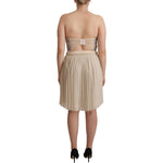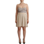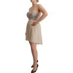 Guess Beige Checkered Pleated A-line Strapless Bustier Dress