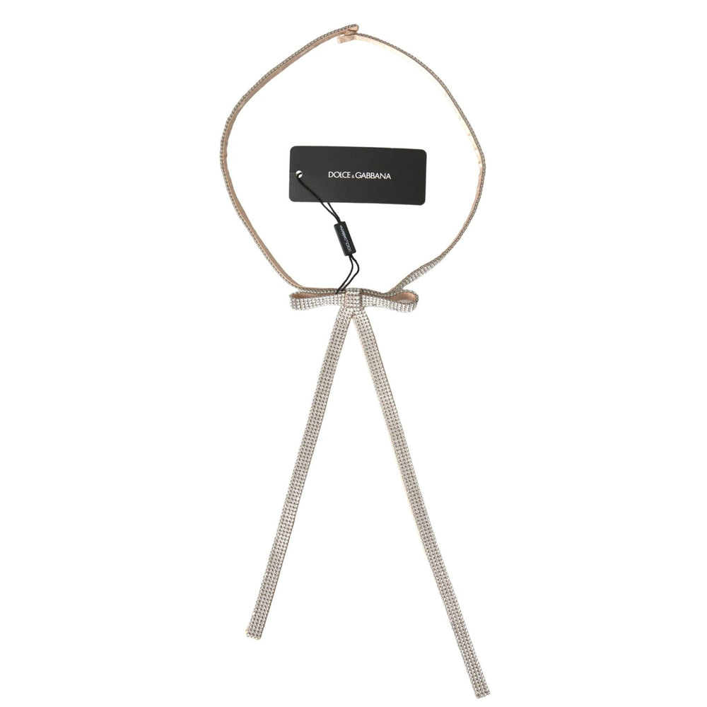 Dolce & Gabbana Beige Silk Clear Crystal Bow Waist Belt