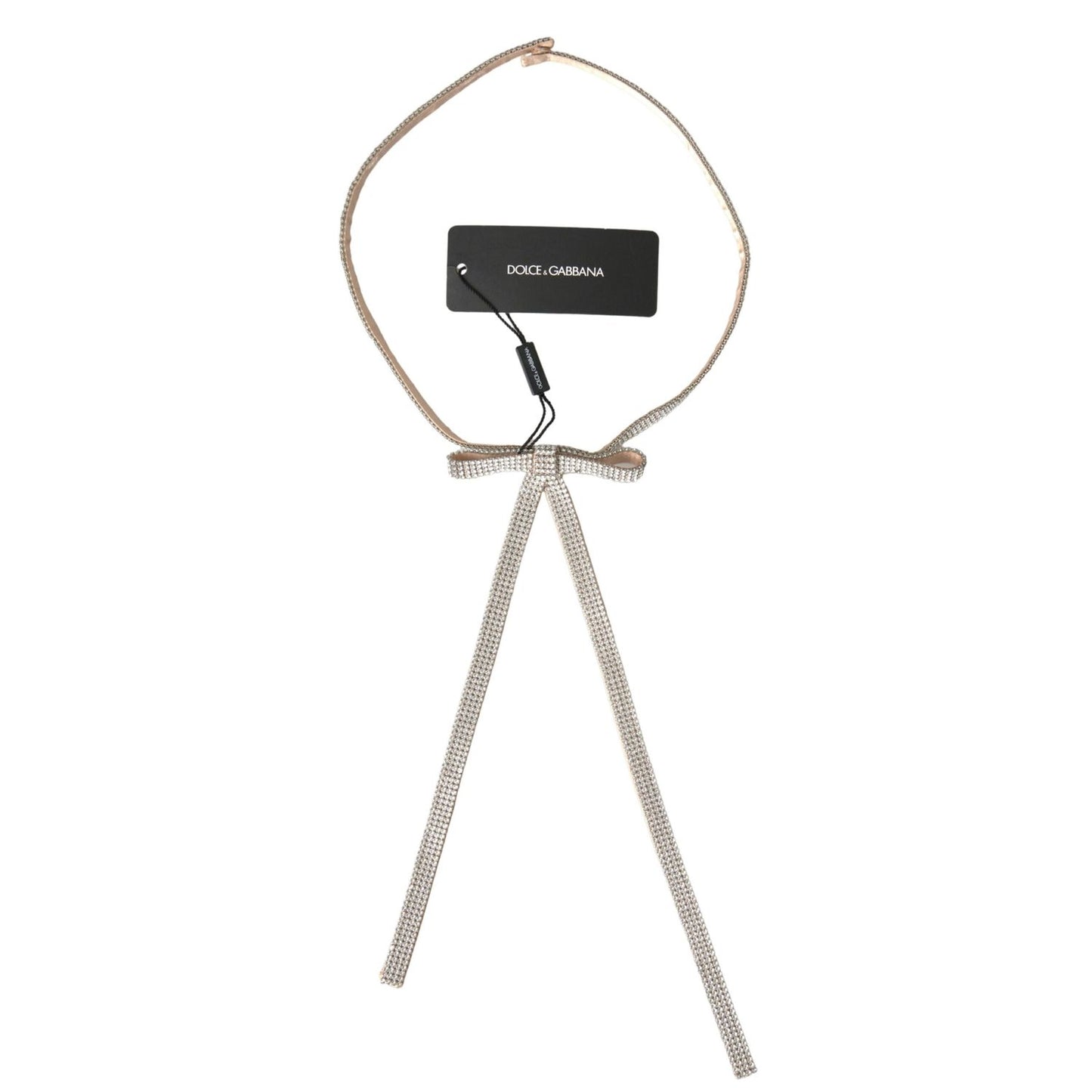 Gorgeous brand new with tags, 100% Authentic Dolce & Gabbana beige silk clear crystal skinny bow waist belt.