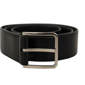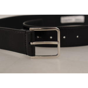 Dolce & Gabbana Black Calf Leather Logo Engraved Metal Buckle Belt