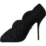 Dolce & Gabbana Black Cordonetto Ricamo Pump Open Toe Shoes
