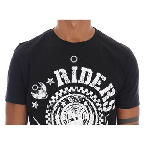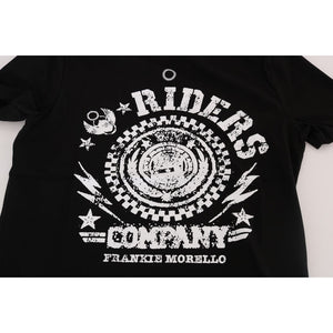 Frankie Morello Black Cotton RIDERS Crewneck T-Shirt