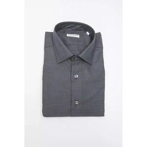 Infuse your wardrobe with the sleek sophistication of a Robert Friedman creation. This Medium Slim Collar Shirt is the epitome of refined style, tailored to perfection for the modern man. Crafted from luxurious materials with a likeness to cotton, it boasts a crisp, black hue that exudes an air of class and timelessness. Whether dressed up for a formal event or styled down for a smart-casual look, this shirt is a testament to impeccable taste.