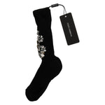 Dolce & Gabbana Black Knitted Floral Clear Crystal Socks