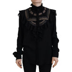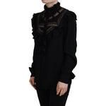 Dsquared² Black Lace Trim Turtle Neck Long Sleeves Top