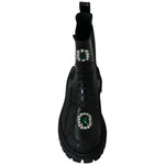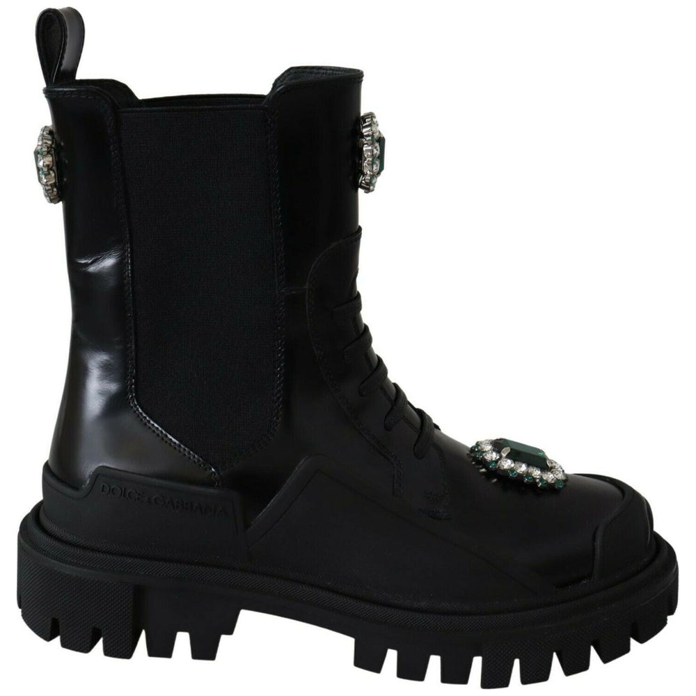 Dolce & Gabbana Black Leather Crystal Combat Boots