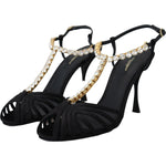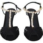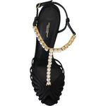Dolce & Gabbana Black Satin Clear Crystal T-strap Sandal Shoes