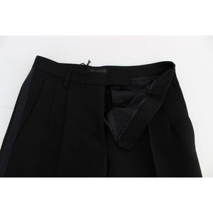 Ermanno Scervino Black Striped Cotton Blend Wide Legs Pants
