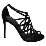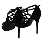 Dolce & Gabbana Black Suede Ankle Strap Stiletto Shoes