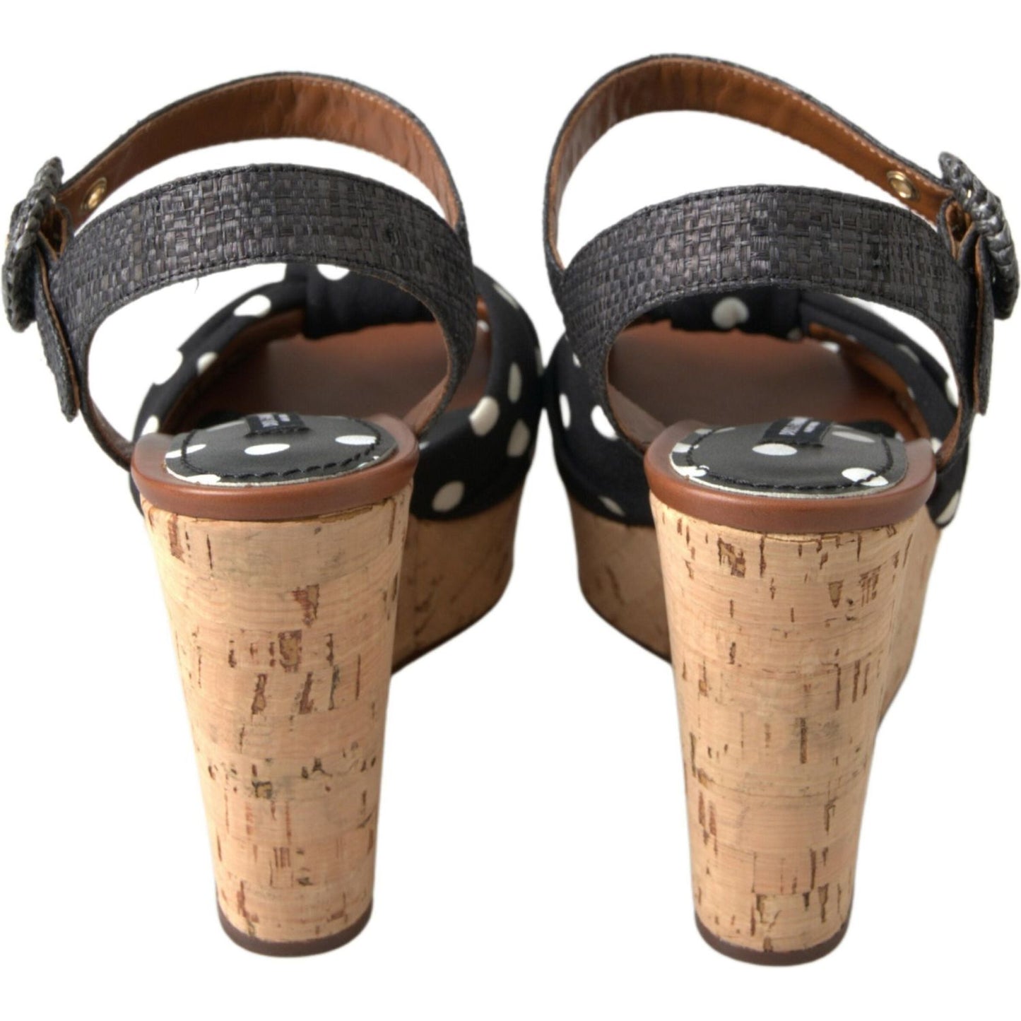 Dolce & Gabbana Black Wedges Polka Dotted Ankle Strap Shoes Sandals