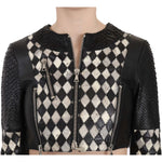 John Richmond Black White Leather Short Cropped Biker Jacket Coat