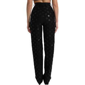 Dolce & Gabbana Black Wool DG Logo High Waist Straight Pants
