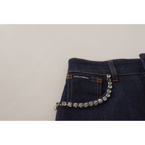 Dolce & Gabbana Blue Denim Stretch Crystal Hot Pants Shorts