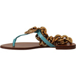 Dolce & Gabbana Blue Leather Devotion Flats Sandals