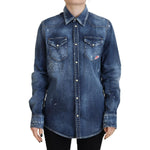 Dsquared² Blue Washed Cotton Button Down Collared Denim Shirt