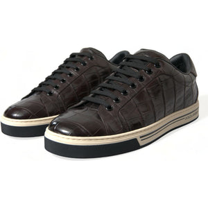 Dolce & Gabbana Brown Croc Exotic Leather Men Casual Sneakers Shoes