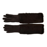 Dolce & Gabbana Brown Elbow Length Mittens Leather Fur Gloves
