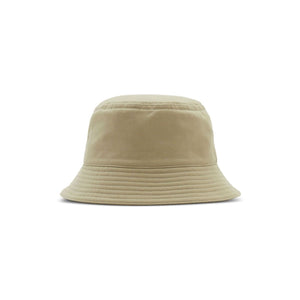 beige cotton flat crown dropped wide brim tonal stitching signature Equestrian Knight motif embroidered logo pull-on style Cotton bucket hat