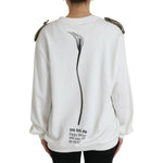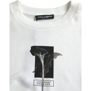 Dolce & Gabbana White Floral Cotton Crew Neck Pullover Sweater