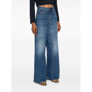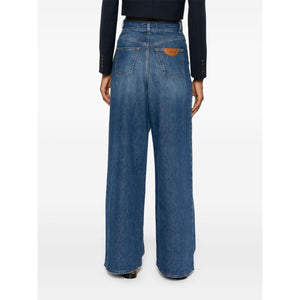 medium blue cotton washed denim contrast stitching high-rise belt loops classic five pockets logo patch to the rear wide leg concealed fly and button fastening Wide-leg denim jeans Size and Fit - This piece fits true to size. We recommend you get your regular size. Model is 1,75m / 5ft 8in wearing size 27 (WAIST CM)