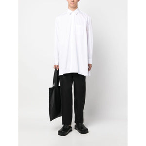 side-slits cotton shirt from COMME DES GARÇONS SHIRT featuring optical white, cotton, classic collar, front button fastening, long sleeves, buttoned cuffs, chest patch pocket, side slits and curved hem. Cotton shirt Size and Fit - This piece fits true to size. We recommend you get your regular size. Model is 1,84m / 6ft 1in wearing size M