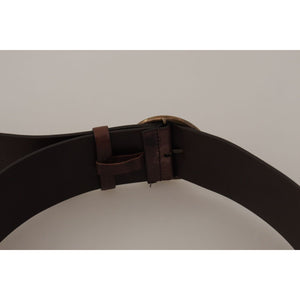 Dolce & Gabbana Dark Brown Wide Calf Leather Logo Round Buckle Belt