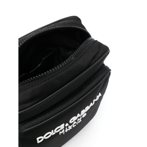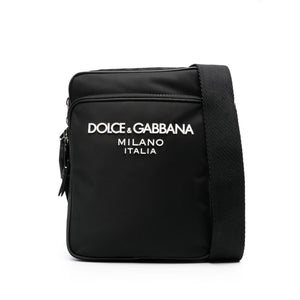 black adjustable shoulder strap with leather trim silver-tone branded zip puller front zip-fastening pocket rubberised logo detail at the front main compartment internal card slot debossed internal logo full lining top zip fastening Nylon crossbody bag Size and Fit - Width 6,69 in / 17 cm
