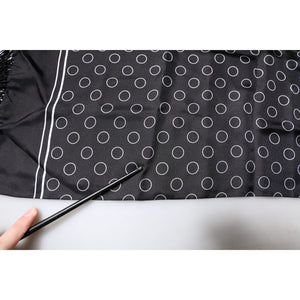 Dolce & Gabbana Black Circles Silk Fringes Shawl Wrap Scarf