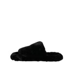 Dolce & Gabbana Black Faux Fur Flats Men Sandals Shoes