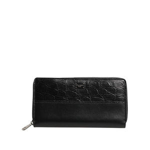Dolce & Gabbana Black Leather DG Plaque Zip Around Continental Wallet