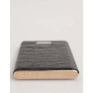 Dolce & Gabbana Black Leather Exotic 3000mAh Power Bank Charger USB with luxurious skin-textured exterior for stylish on-the-go charging.