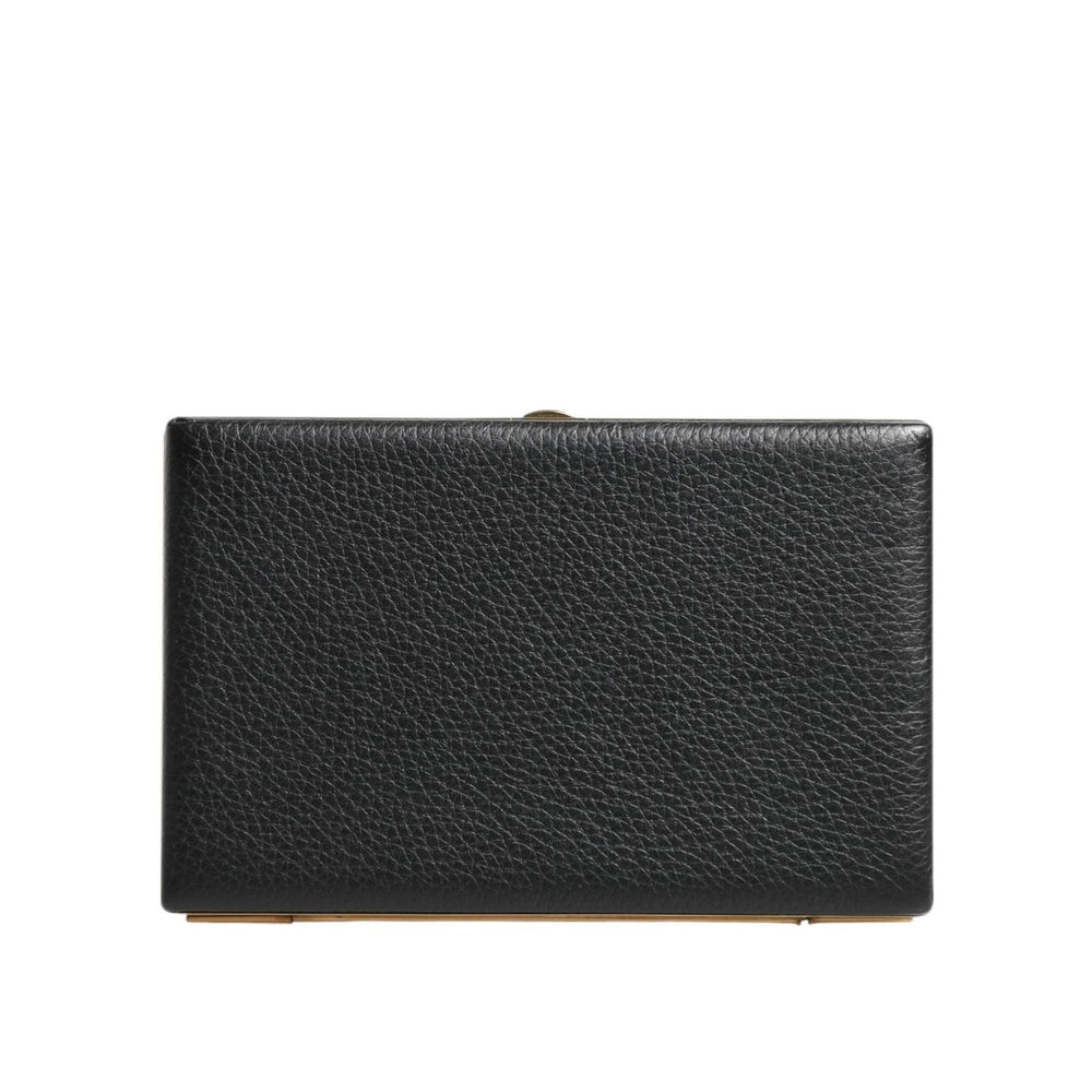 Dolce & Gabbana Black Leather Gold Frame Clutch Evening Party Purse Bag